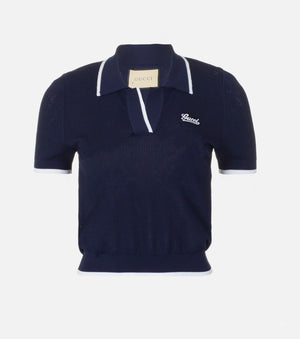 • Плетена поло тениска с яка и къс ръкав, бродирано лого