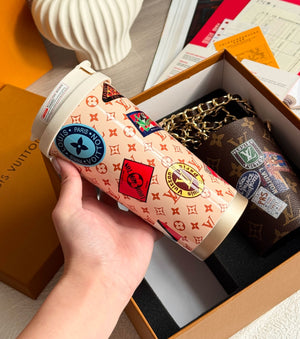 Monogram coffee cup and cup case