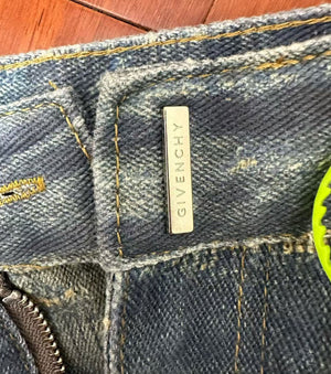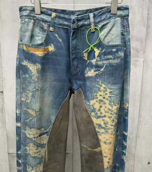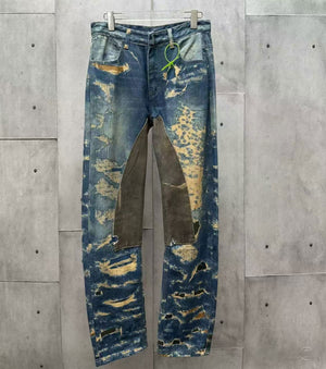 • Дънки от винтидж деним и скъсани шевове с ефект на разкъсване и кант от молскин