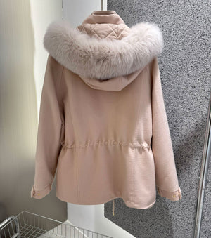 • Сваляща се качулка с яка от лисица