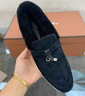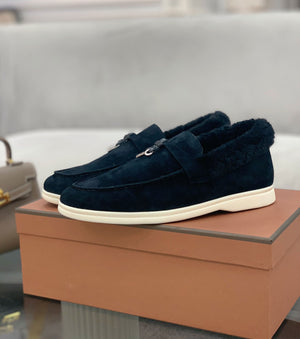 Non-slip soles with all-over, embossed Loro Piana monogram.