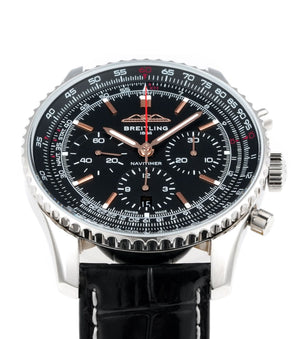 • Multi-layered scale with high readability, characteristic of the Navitimer series. Balance between technical complexity and classic aesthetics.