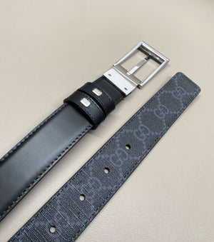 Black leather reverses to black and gray GG Supreme canvas