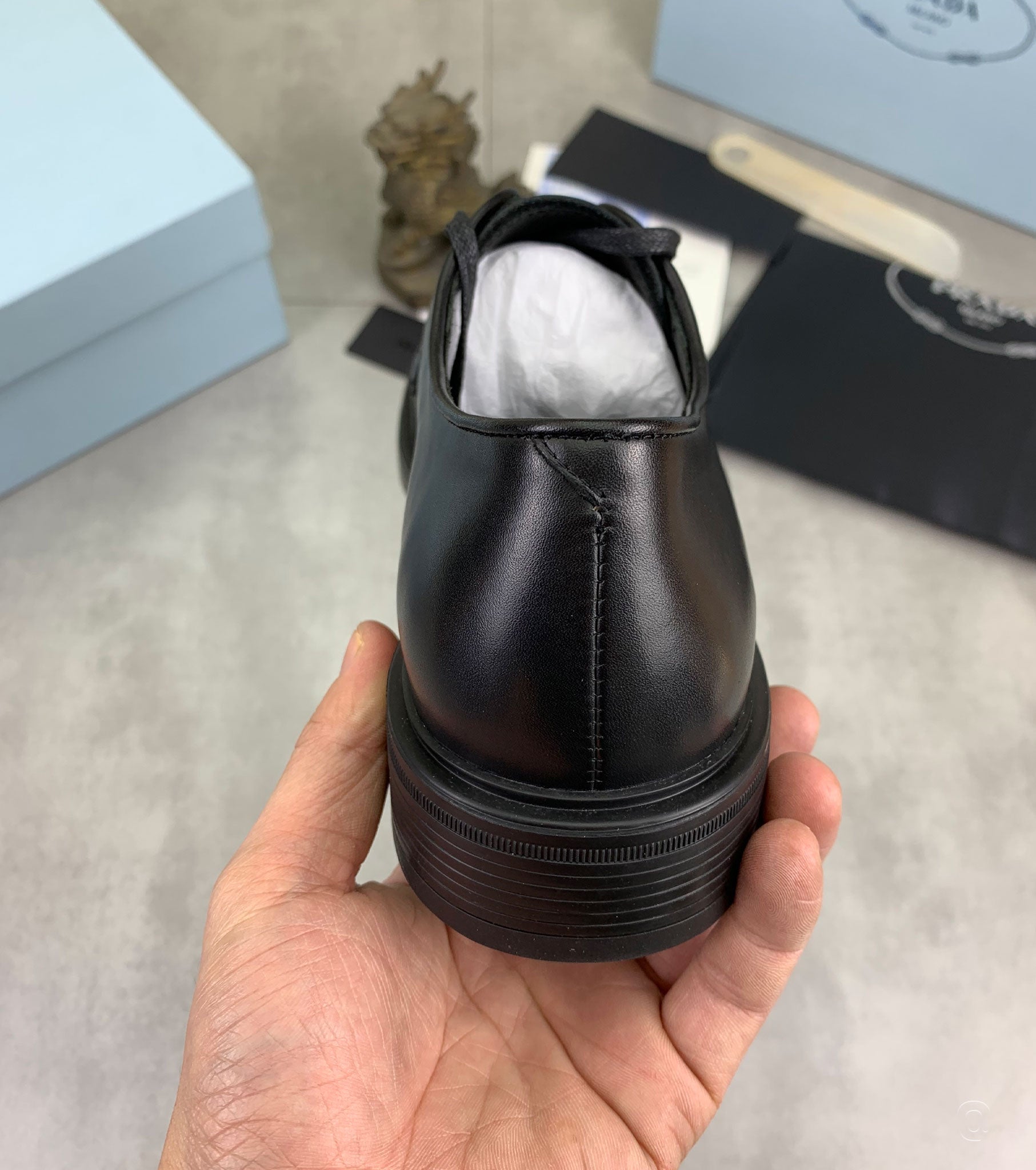 Brushed Leather Triangle Logo Derby Loafer