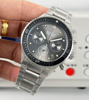 Този впечатляващ часовник от легендарната колекция Fifty Fathoms съчетава военна надеждност, модерна инженерна прецизност и неподражаем подводен стил.