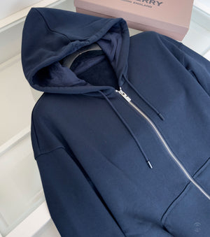 • Суитшърт с качулка, закопчаване с цип, лого отпред и еластична талия и маншети