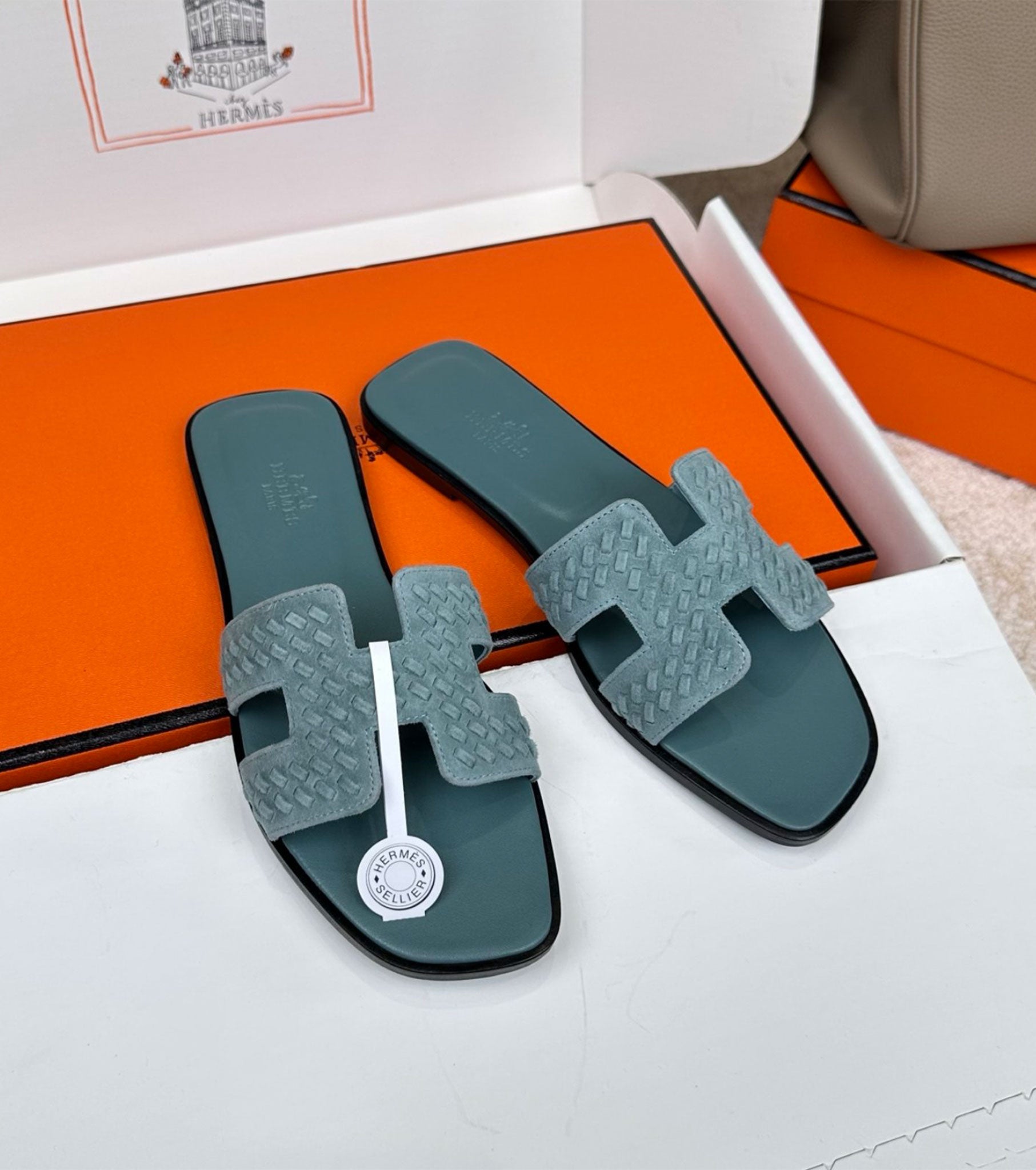 Плетена велурена козя кожа с емблематичен детайл "H"