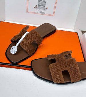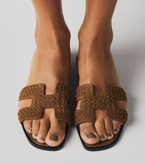 Плетена велурена козя кожа с емблематичен детайл "H"